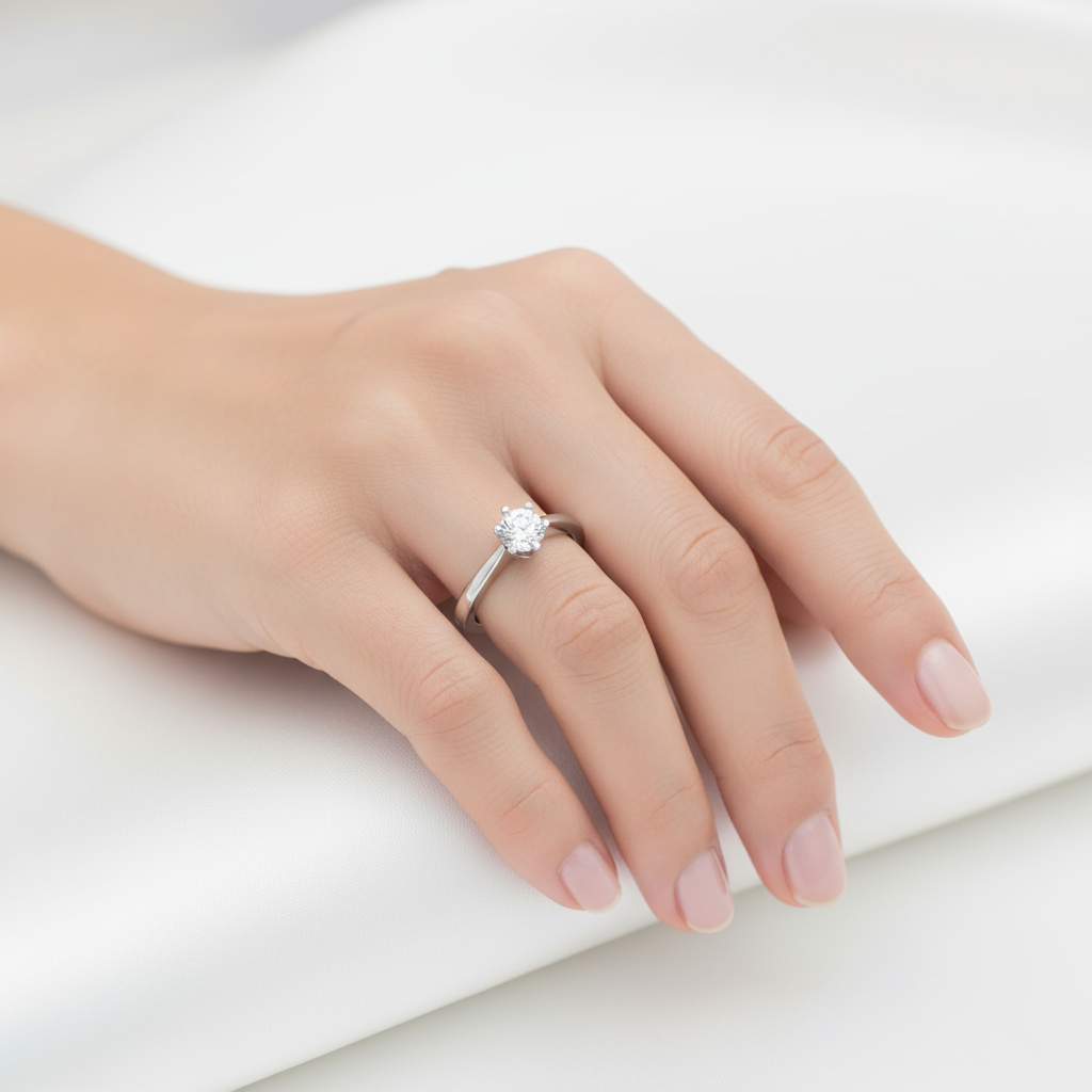 Este elegante anel solitário é confeccionado em prata , oferecendo brilho duradouro e excelente resistência à oxidação. O destaque é a pedra central, fixada em uma tradicional cravação de seis garras, que garante estabilidade e maximiza o brilho. Possui aro levemente anatômico com acabamento polido e estrutura firme, ideal para o uso diário.