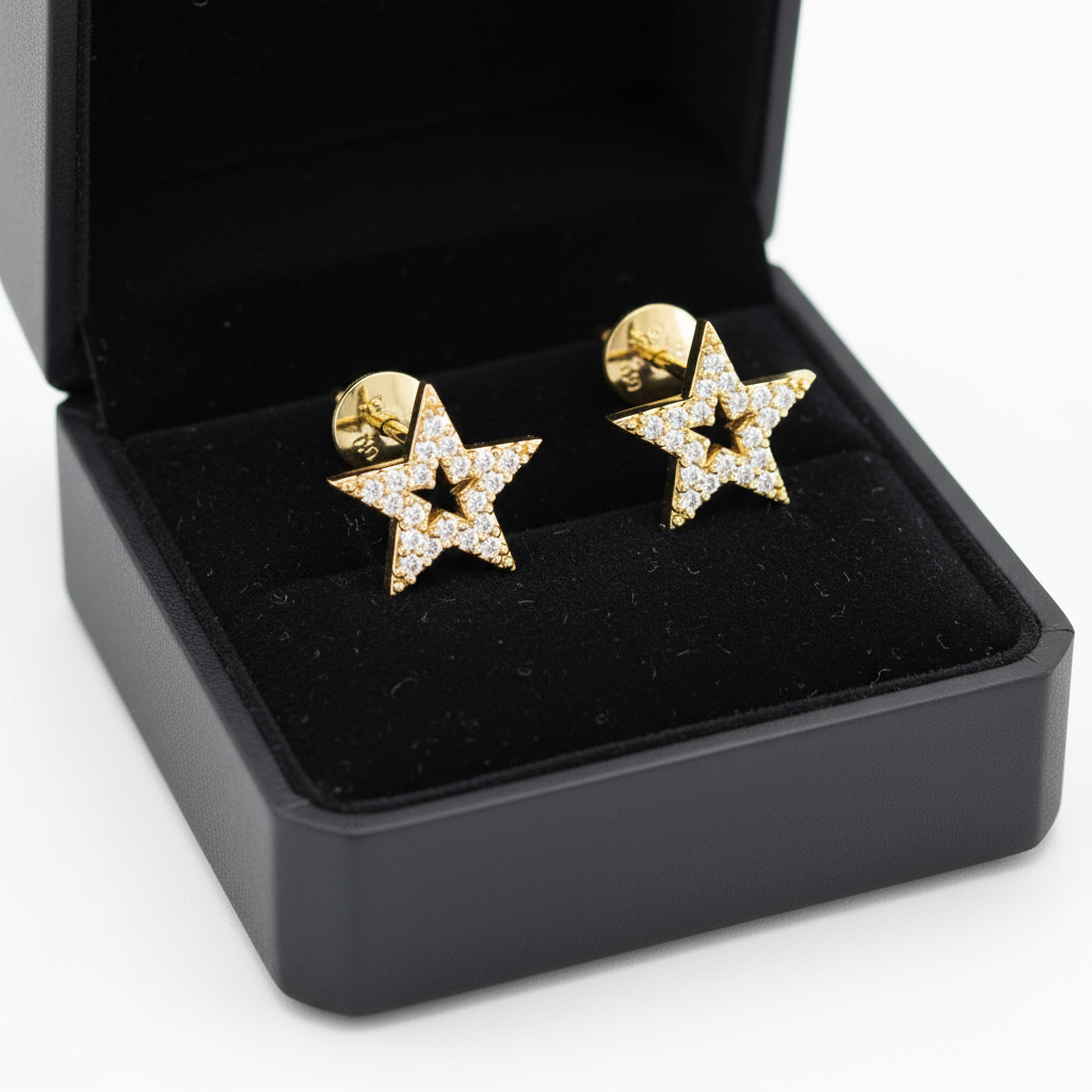 Brinco Estrela em Ouro 18K com Cravação Pavê