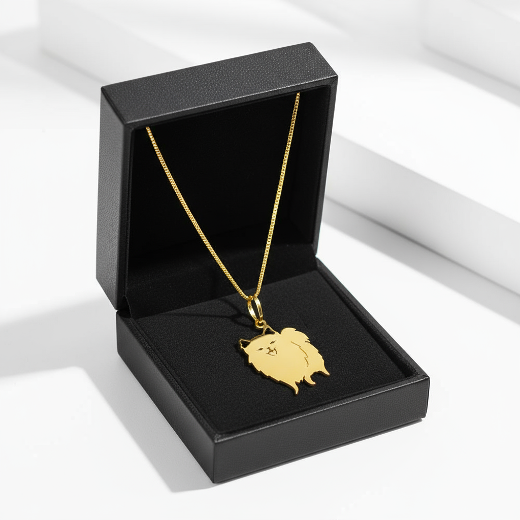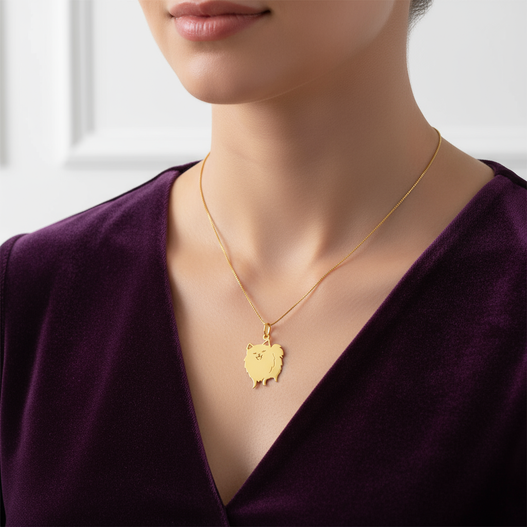 A peça é leve, resistente e versátil, ideal para uso diário ou como acessório colecionável por amantes da raça. Este pingente exclusivo é confeccionado em ouro amarelo 18K, com acabamento altamente polido e recorte preciso a laser, representando com fidelidade o perfil encantador do cão da raça Lulu da Pomerânia.