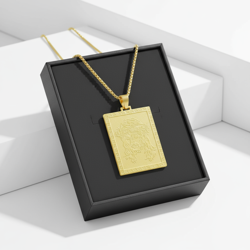 Cada detalhe foi cuidadosamente desenhado para transmitir devoção, respeito e conexão espiritual profunda. Mais do que uma joia, essa peça representa a presença constante de Cristo ao seu lado — nos dias bons e nos momentos difíceis. Este pingente em ouro 18K eterniza o olhar sereno e compassivo de Jesus, coroado de espinhos, em um retrato que toca a alma.